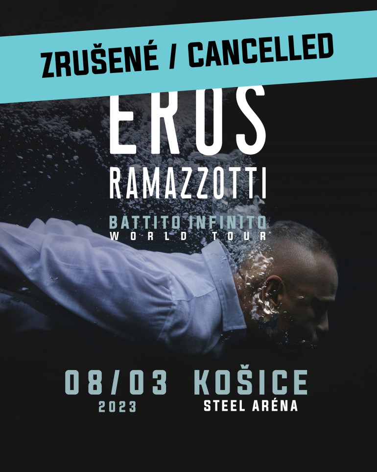 Koncert Erosa Ramazzottiho, ktorý sa mal uskutočniť dňa 8.3.2023 v Steel Aréne v Košiciach a bol z dôvodu ochorenia umelca zrušený, sa v náhradnom termíne neuskutoční.