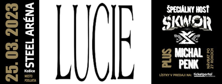 LUCIE – stálica ČESKOSLOVENSKEJ rockovej hudby, ktorá časom zreje k dokonalosti a to vidieť aj cítiť na ich živom prejave. Hity, ktoré za desiatky rokov vytvorili zostanú hrubým písmom zapísané v historických spomienkach. Ich perfekcionalita a dôraz na kvalitu sa vždy prejavia aj na ich koncertoch v podobe hudobnej, technickej a vizuálnej výpravy. Nemusíme asi moc pripomínať ich hudobnú tvorbu ale určite sa nedá nespomenúť hity ako LUCIE, Chci zas v tobe spát, Šrouby do hlavy, Dotknu se ohně, Amerika.